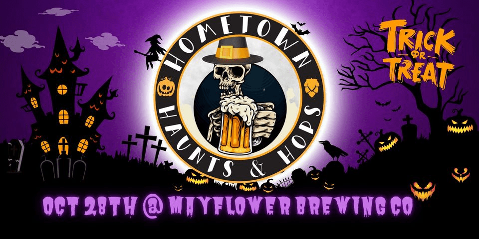 Get ready for a spine-chilling day of terror and hops at the Hometown Haunts & Hops horror convention at Mayflower Brewing Co. on October 28th from 12-7!